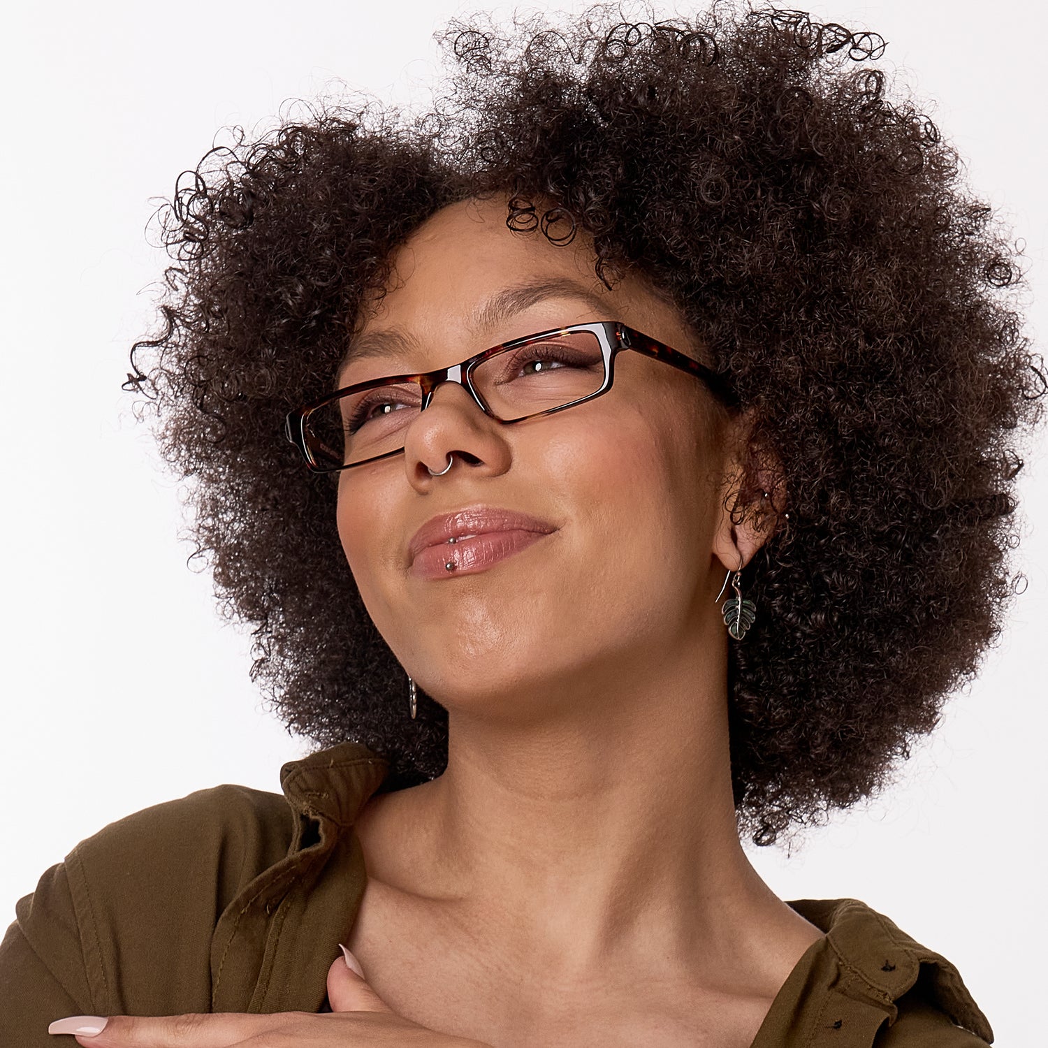 Elegant classic style reading glasses in glossy tortoiseshell from German brand I Need You. Featuring rectangular lenses and available in strengths from +1.00 to +3.50. A matching felt soft pouch is also included.